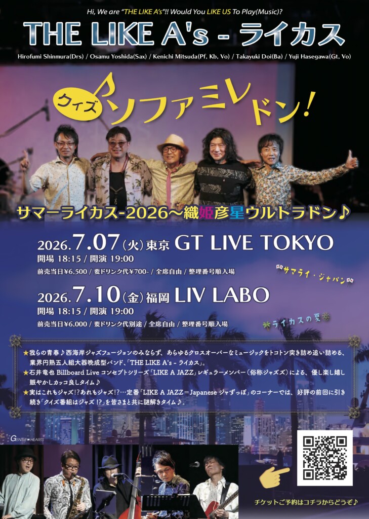 ⭐我らの青春♪西海岸ジャズフュージョンのみならず、あらゆるクロスオーバーなミュージックをトコトン突き詰め追い詰める、業界円熟五人組大器晩成型バンド、「THE LIKE A’s – ライカス」。